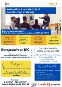 Pendant 6 semaines, le GRETA CFA HSNFC vous accompagne pour concrétiser votre projet en toute sécurité. Réunion d’information collective le 16 janvier 2026 à 14h au Lycée Lumière site Beauregard à Luxeuil-les-Bains.