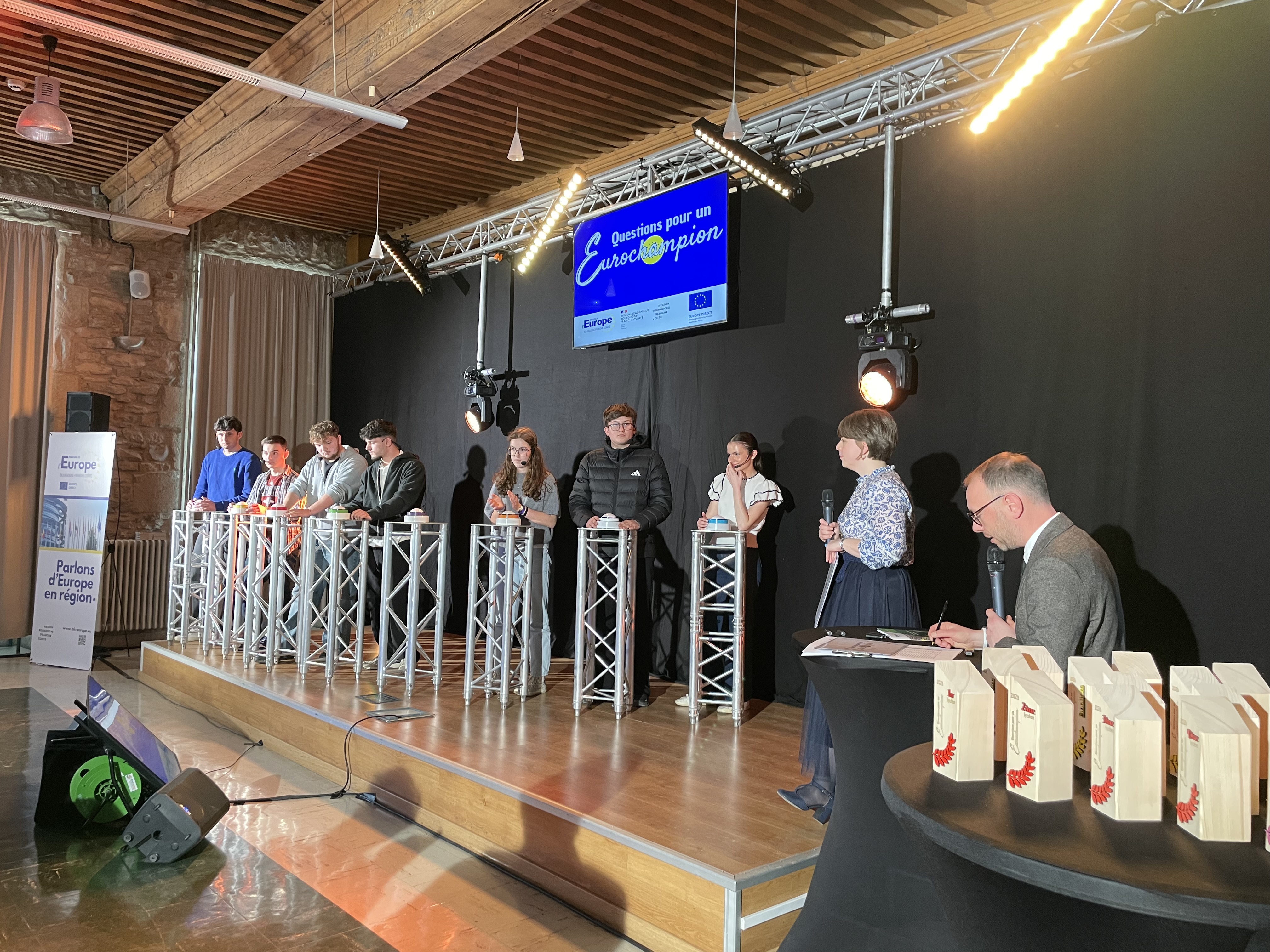 Ce mardi 11 mars, trois élèves du lycée Lumiere ont participé à la finale régionale de Questions pour un eurochampion, organisée par la Maison de L’Europe de Bourgogne-Franche-Comté, au lycée Charles Nodier de Dole.
