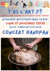 Le 14 ème intermède artistique aura lieu dans la rue du lycée ce vendredi 11 avril.