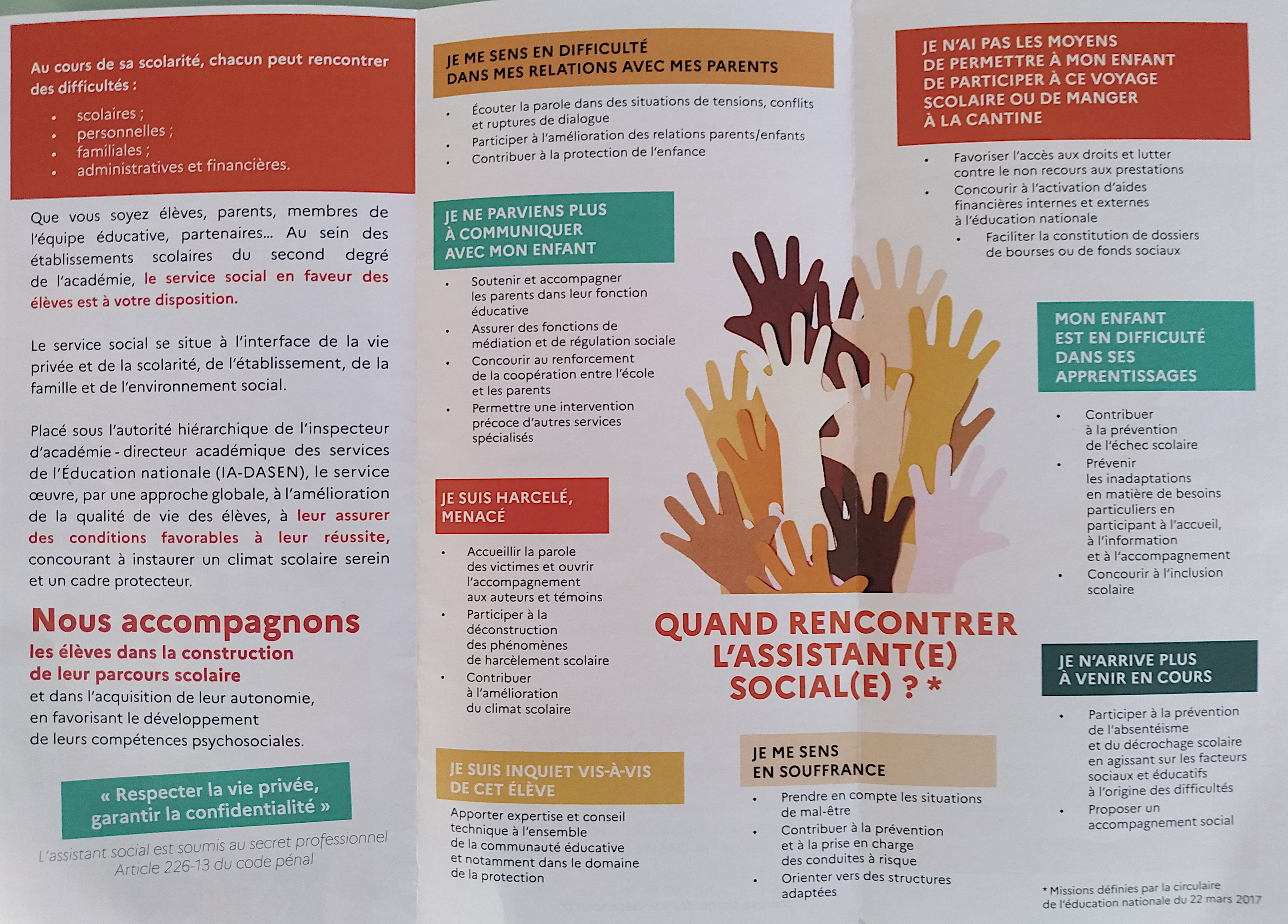- accueillir la parole des élèves sur des situations difficiles et /ou de mal-être et travailler à une prise en compte adaptée;
