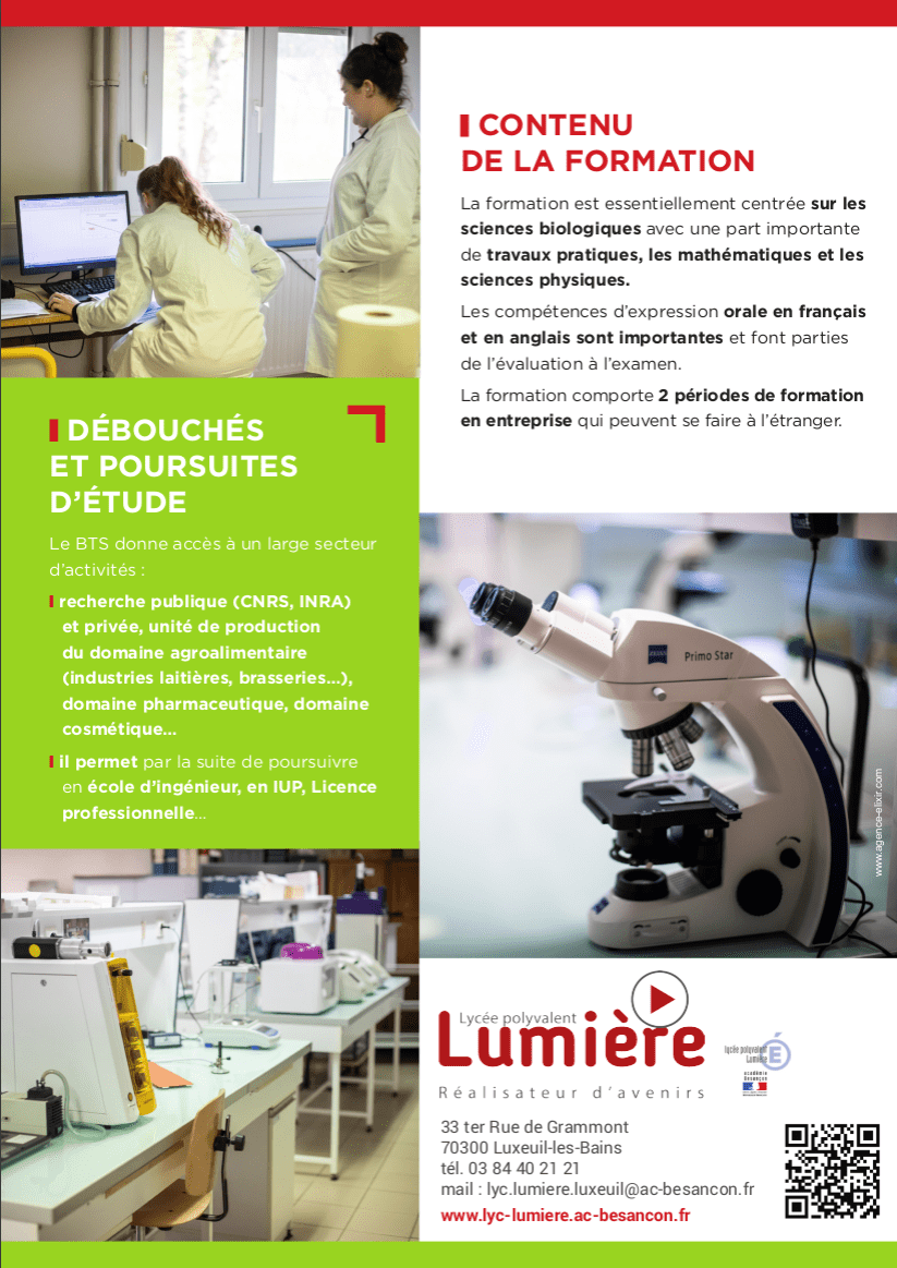 Nouveau BTS en Biotechnologie