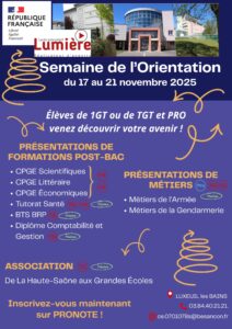 Dans le cadre du parcours Avenir, la semaine de l’orientation aura lieu du 17 au 21 novembre 2025
